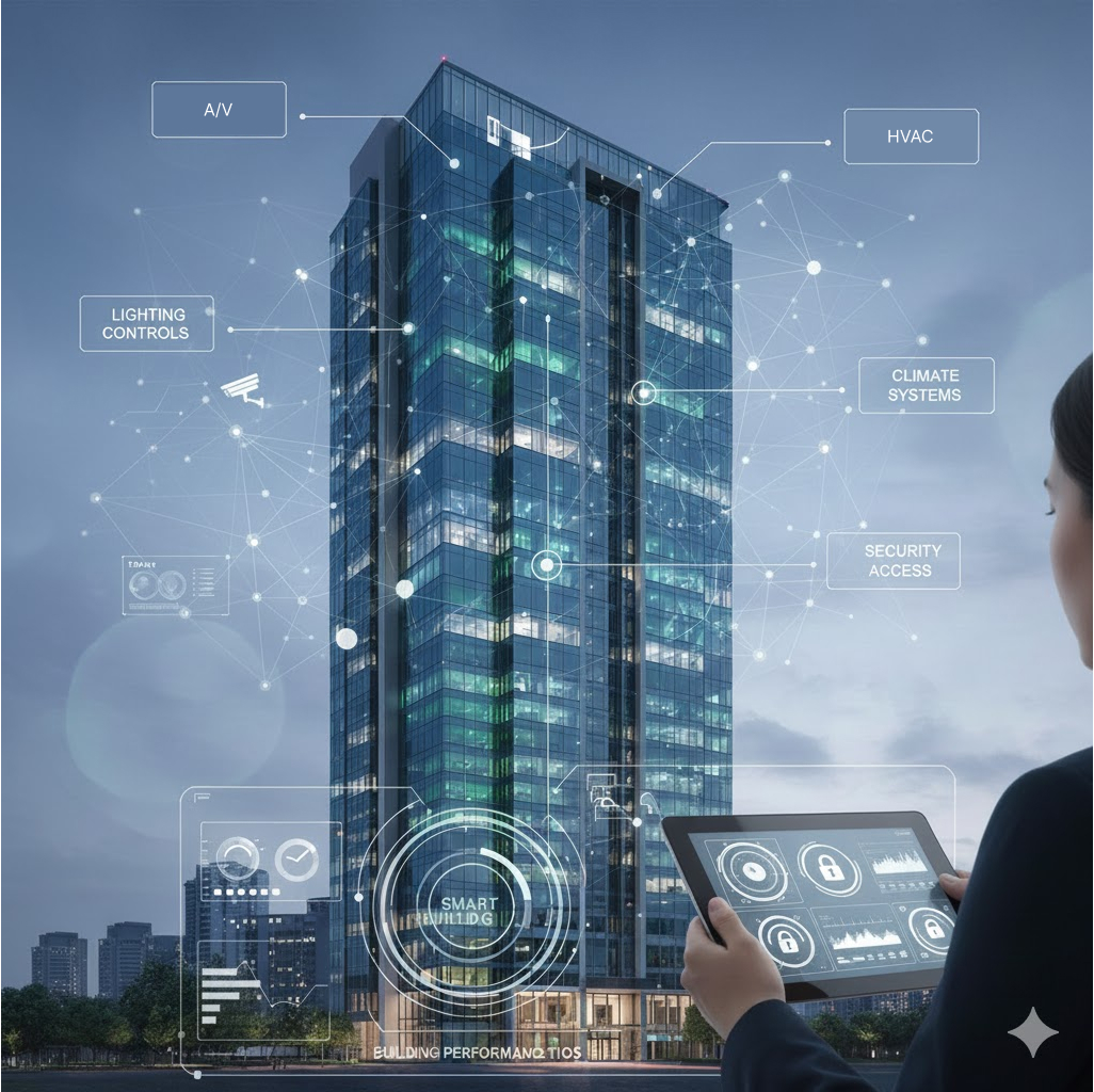 Automation reduces waste by adjusting lighting, HVAC, and equipment based on occupancy and real-time conditions, cutting utility costs while supporting sustainability and Title 24 compliance.
